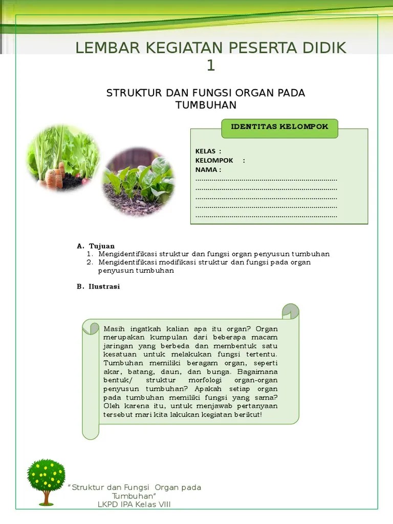 Siswa pada materi gerak tumbuhan dengan menerapkan model pembelajaran kooperatif tipe. Pengembangan lembar kerja peserta didik (lkpd) berbasis inkuiri terbimbing pada materi struktur dan fungsi tumbuhan serta pemanfatannya dalam teknologi kelas . 5 x 40 menit (5 jp). Pokok bahasan yang dipadukan dalam lks ini adalah materi gerak tumbuhan, gaya gravitasi, sumber cahaya dan penerapan getaran pada kelas viii smp. Silabus, rpp, lks, kuisioner, lembar observasi, dan post test.